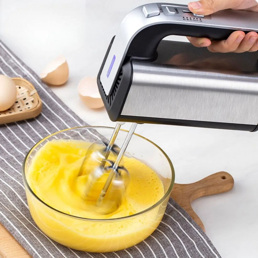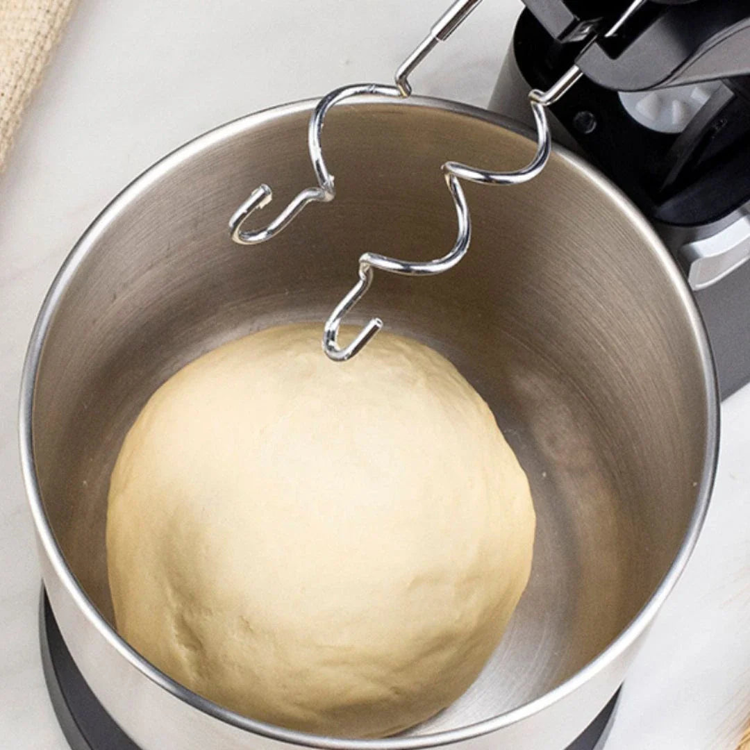 Le moteur du batteur offre une puissance de 300 W, réglable sur 5 vitesses avec une fonction turbo. Cela lui permet de convenir à des préparations variées, y compris des pâtes plus denses comme celles utilisées pour le pain.